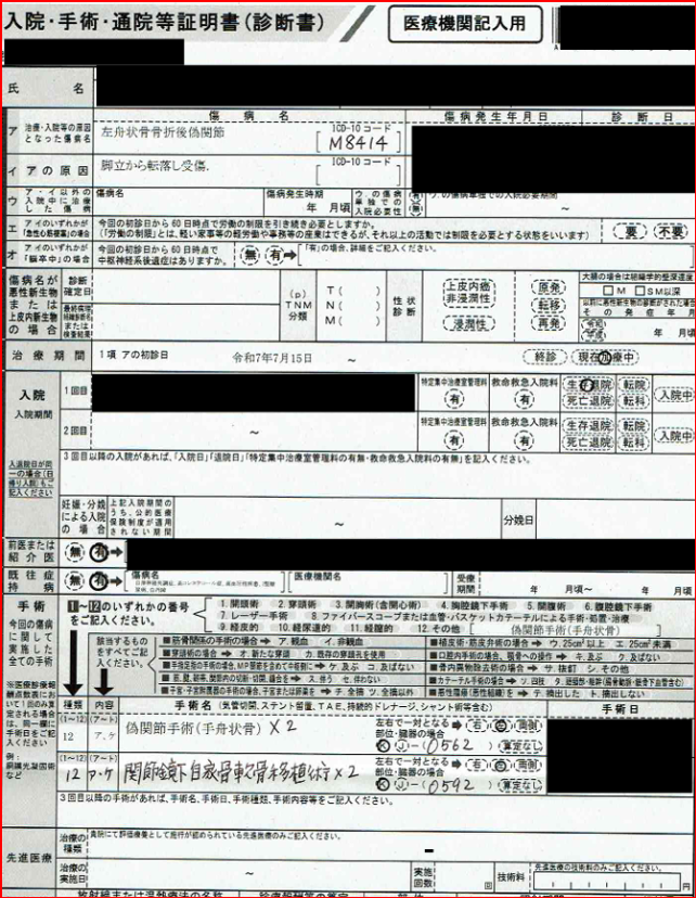 診断書(舟状骨偽関節手術症例)— 医療解説